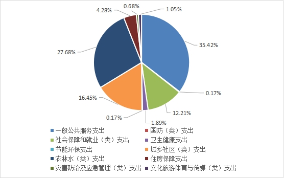 2024年度一般公共预算财政拨款支出1165.97万元,主要用于以下方面:一般公共服务支出412.97万元,占35.42%;国防(类)支出2.00万元,占0.17%;社会保障和就业(类)支出142.36万元,占12.21%;卫生健康支出22.00万元,占1.89%;节能环保支出2.00万元,占0.17%;城乡社区(类)支出191.84万元,占16.45%;农林水(类)支出322.74万元,占27.68%;住房保障支出49.86万元,占4.28%;灾害防治及应急管理(类)支出7.91万元,占0.68%;文化旅游体育与传媒(类)支出12.29万元,占1.05%。