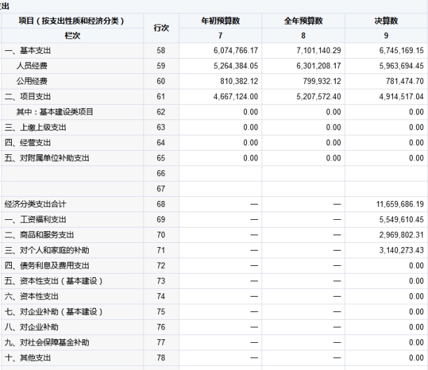 2024年本年支出合计1167.59万元,其中:基本支出674.52万元,占57.8%;项目支出491.45万元,占42.2%;上缴上级支出0万元;经营支出0万元;对附属单位补助支出0万元。