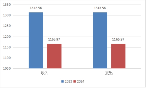 2024年度财政拨款收、支总计均为1165.97万元。与2023年度相比,财政拨款收、支总计减少147.59万元,下降11.23%。主要变动原因是人员减少、项目资金收支减少。