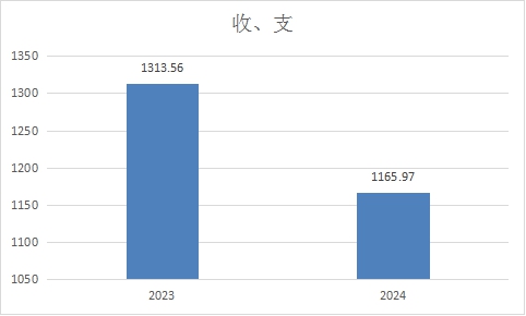 2024年度收、支总计1167.97万元。与2023年相比,收、支总计各减少147.59万元,下降11.23%。主要变动原因是人员减少、项目资金收支减少。