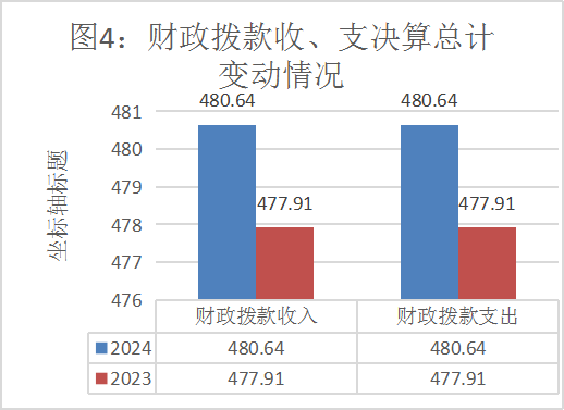 2024年度财政拨款收、支总计均为480.64万元。与2023年度相比,财政拨款收、支总计各增加2.73万元,增长0.57%。主要变动原因是一般公共服务支出增长(注:数据来源于财决01-1表)