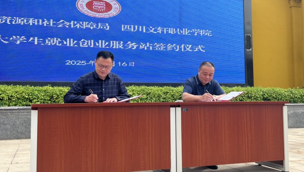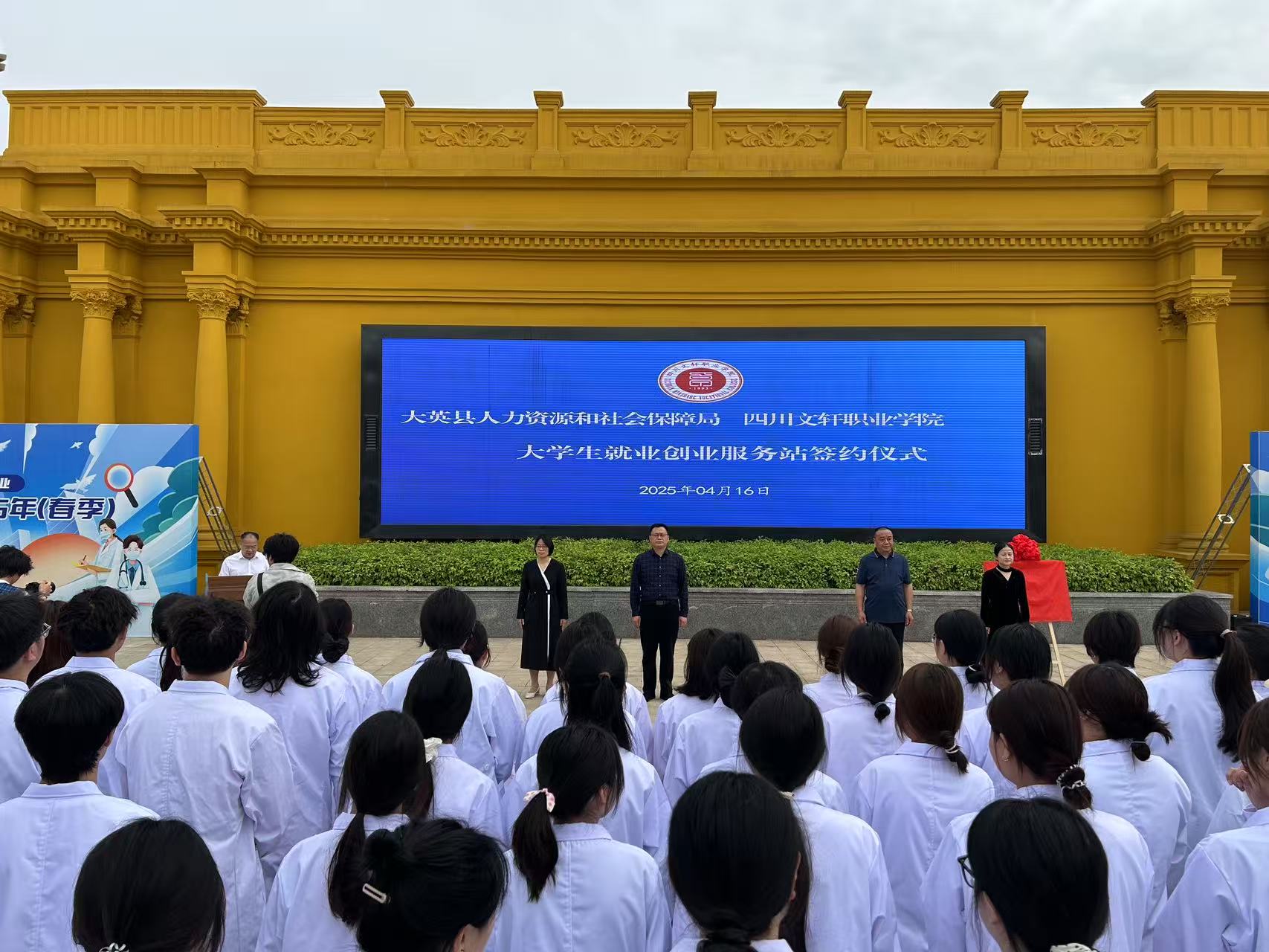 2025年4月16日,四川文轩职业学院大学生就业创业服务站签约揭牌仪式在四川文轩职业学院(遂宁校区)举行。仪式上,大英县人力资源和社会保障局与四川文轩职业学院共同签署《遂宁市大学生就业创业服务站合作协议》,服务站的建立是贯通职业教育与就业市场的重要创新举措,推动了人才培养与产业需求的“零距离”衔接,标志着大英县在进一步深化产教整合,全面开启政校协同育人机制方面迈出实质性的一大步。