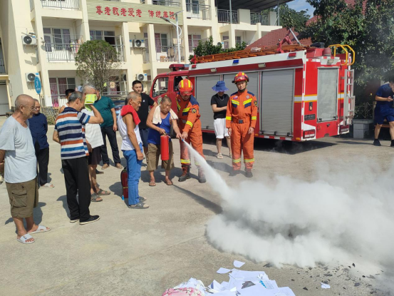 随着消防警报声划破养老服务中心上空,演练正式开启。工作人员迅速行动,按照既定预案,引导院民们用湿毛巾捂住口鼻,保持弯腰低姿,沿着疏散逃生路线,有条不紊地向安全地带撤离。整个疏散过程中,老人们听从指挥、行动有序,充分展现出培训的良好效果。疏散完成后,在消防队专业人员的指导下,部分院民还亲手操作灭火器,进行灭火实战体验,通过“手把手”教学,切实掌握灭火器的使用方法,实现从理论到实践的跨越。