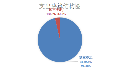 2024年度本年支出合计3766.85万元,其中:基本支出3630.59万元,占96.38%;项目支出136.26万元,占3.62%。