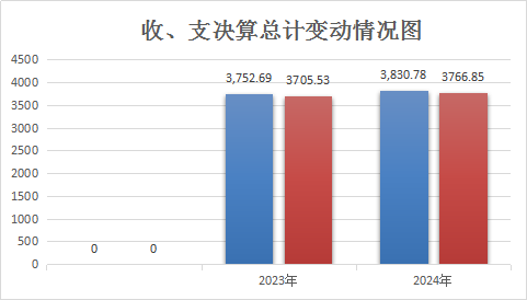 2024年度收、支总计为3830.78万元、3766.85万元。与2023年度收、支3752.69万元、3705.53万元相比,收、支总计各增加78.09119.46万元、61.32万元,收、支增长2.08%、1.65%。主要变动原因是教师薪资正常增加。