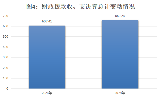 2024年财政拨款收、支总计660.23万元。与2023年相比,财政拨款收、支总计各增加52.82万元,增长8.7%。主要变动原因是增加工资和项目资金增加。