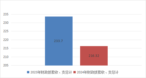 2024年财政拨款收、支总计216.32万元。与2023年相比,财政拨款收、支总计各减少17.38万元,下降7.4%。主要变动原因是减少了规范化建设房屋改造项目支出。