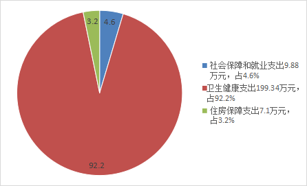 2024年一般公共预算财政拨款支出216.32万元,主要用于以下方面:社会保障和就业支出9.88万元,占4.6%;卫生健康支出199.34万元,占92.2%;住房保障支出7.1万元,占3.2%。