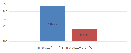 2024年度收、支总计216.32万元。与2023年相比,收、支总计减少30.43万元,下降12.33%。主要变动原因是减少了规范化建设房屋改造项目的支出。
