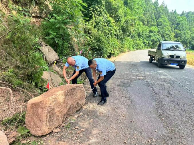 7月18日,大英县交通运输综合行政执法大队在开展道路巡查工作时,发现蓬伏路盛水村地质灾害点落石,滚落的石头横亘路边,严重阻碍车辆正常通行,存在较大安全隐患。面对突发情况,执法人员立即启动应急预案,迅速在事故现场设置安全警示标志,安排专人指挥疏导交通,引导过往车辆和行人有序绕行。