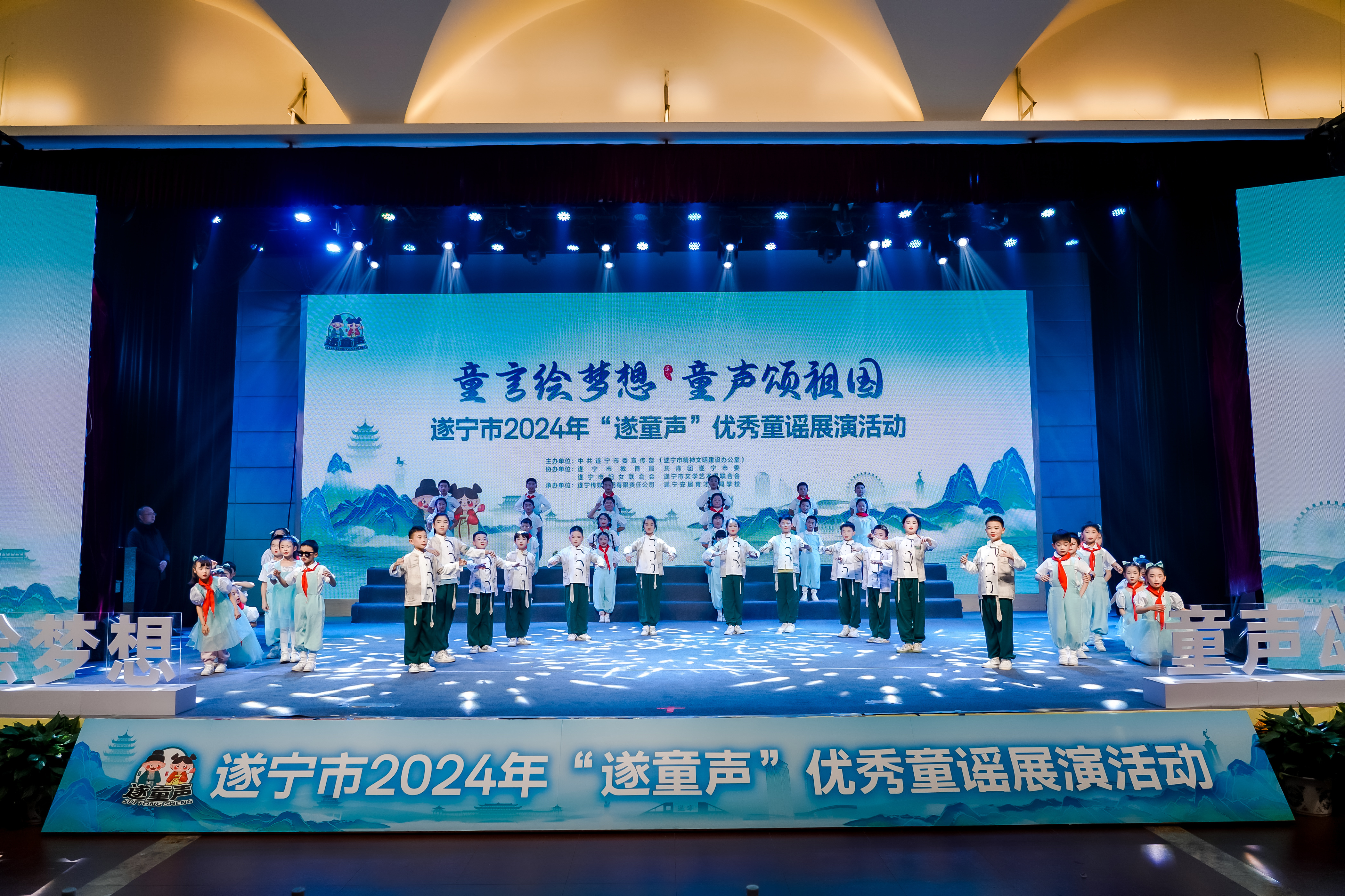本次活动吸引了遂宁市10所学校积极参与,学生们通过创童谣、学童谣、唱童谣、演童谣等多种方式,以新时代为背景,传唱了一系列优秀原创童谣。展演分为“从文明走来”“在今朝奋进”“向未来出发”三个篇章,通过说唱、舞台剧、舞蹈等丰富多彩的形式,全面展现了少年儿童对祖国的热爱、对生活的赞美、对时代的歌颂和对未来的憧憬。