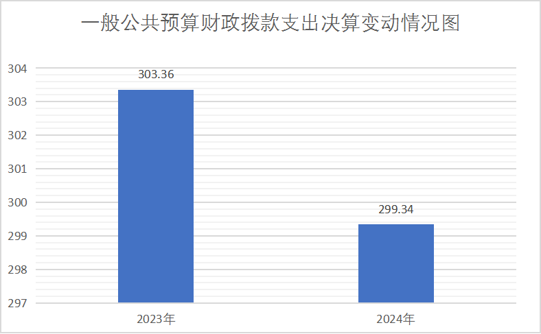 2024年一般公共预算财政拨款支出299.34万元,占本年支出合计的94.82%。与2023年303.36万元相比,一般公共预算财政拨款支出减少4.02万元,下降1.33%。主要变动原因是本年度项目一般公共预算财政拨款支出减少。