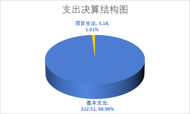 2024年本年支出合计315.69万元,其中:基本支出312.51万元,占98.99%;项目支出3.18万元,占1.01%。