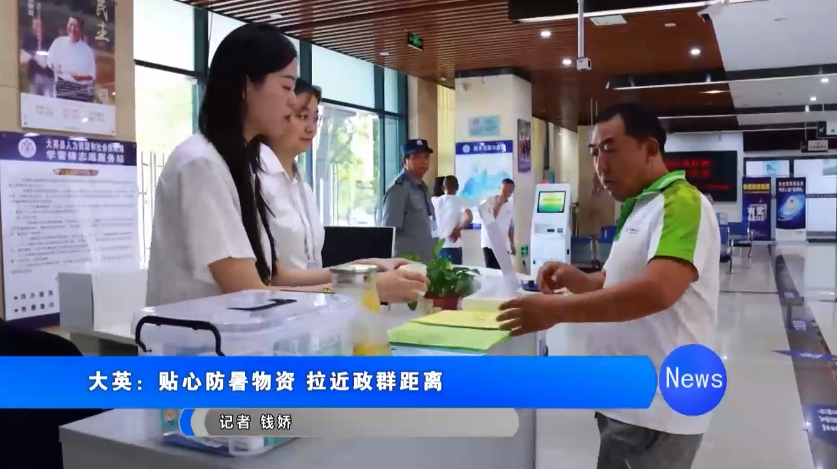【大英县社会保险事务中心工作人员 钟沛虹:除了为群众提供解暑凉茶外,在一楼导办区还放置了藿香正气液、板蓝根等防暑降温用品。合力打造更加温暖、有爱的政务环境。】