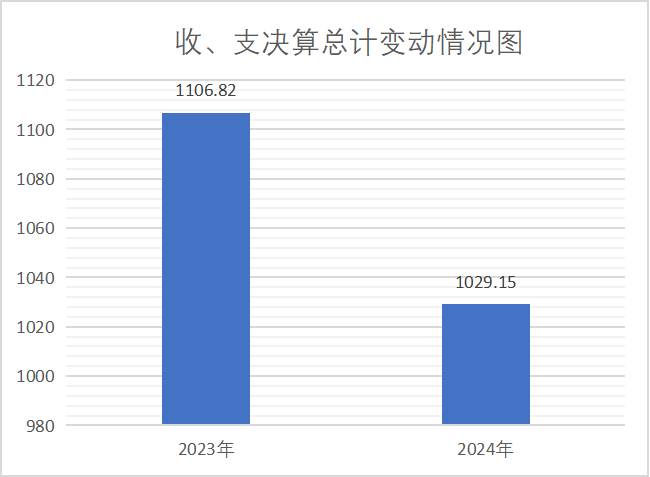 2024年度收、支总计1029.15万元。与2023年相比,收、支总计各减少77.67万元,下降7.02%。主要变动原因是项目资金减少。