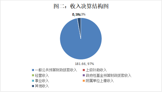部门财政资金收入情况,公共财政预算收入经费拨款186.8万元;一般公共预算拨款收入181.66万元,占97%;其他收入5.14万元,占3%;无国有资本经营预算财政拨款收入;无事业收入;无经营收入;无附属单位上缴收入。