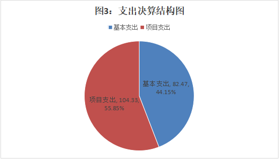 2024年本年支出合计186.8万元,其中:基本支出82.47万元,占44.15%;项目支出104.33万元,占55.85%;上缴上级支出0万元,占0%;经营支出0万元,占0%;对附属单位补助支出0万元,占0%。
