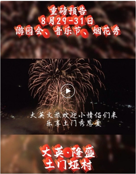 七夕冲大英乐享土门!来一场小镇夏天的热恋!七夕冲大英乐享土门!来一场小镇夏天的热恋!七夕即将来临大英直接把“浪漫 + 欢乐”拉满! 8月29日至31日 大英县隆盛镇土门垭村等你来约~~古风游园会 单身专属相亲会 七夕音乐节 冲壳子剧场爆笑喜剧还有限定烟花秀轮番登场不管是情侣约会 朋友组局还是全家出...
