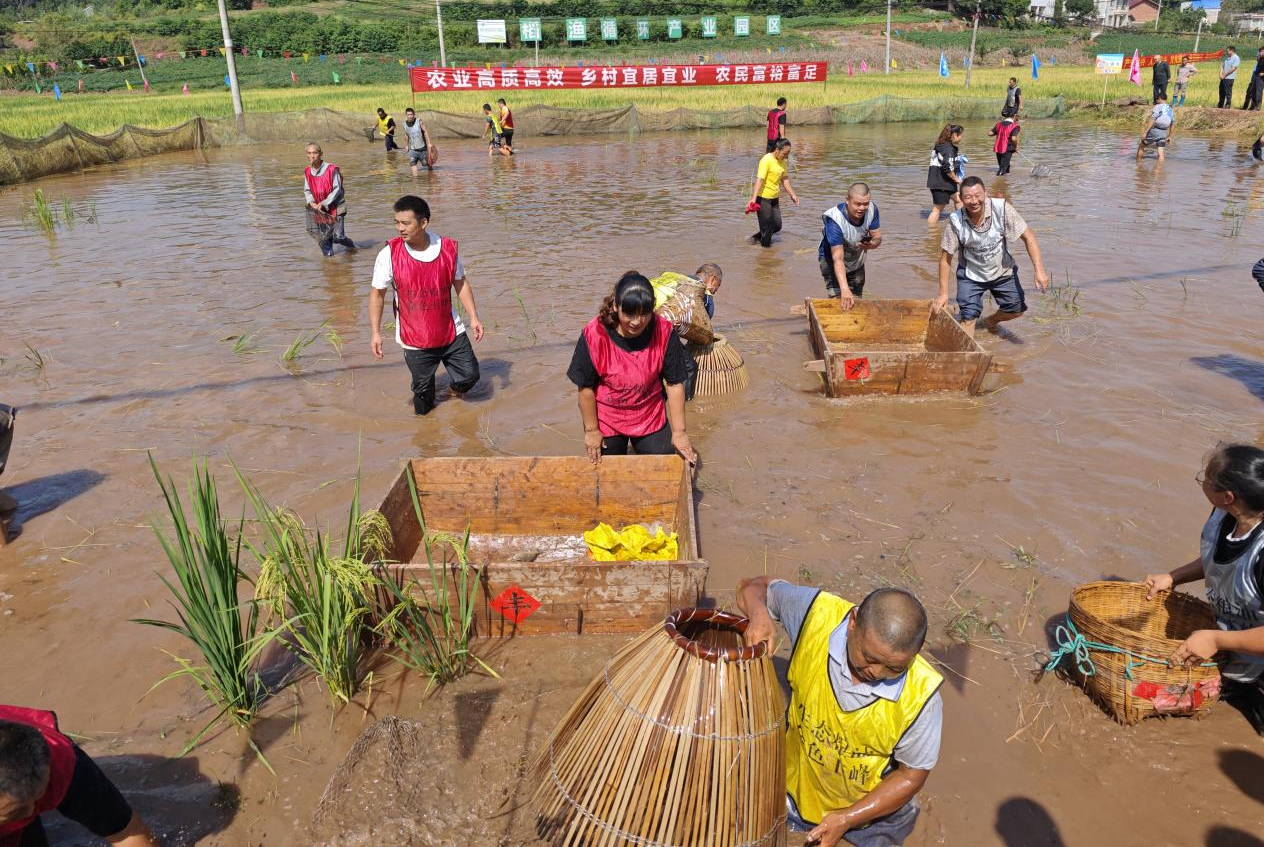 农耕文化沃土情,稻田间触摸文明根。在鱼米之乡,农耕体验活动如火如荼。群众手握传统镰刀,在机械化时代回望水稻收割的艰辛,感受到农耕文明的厚重与传承。稻田摸鱼挑战区,欢声笑语不断,参与者们卷起裤腿,在水中追逐活蹦乱跳的鱼儿,重现《齐民要术》中稻鱼共生的古老智慧。拔河比赛更是将气氛推向高潮,各村群众代表队齐心协力,拔河的绳索传递着团结与力量。