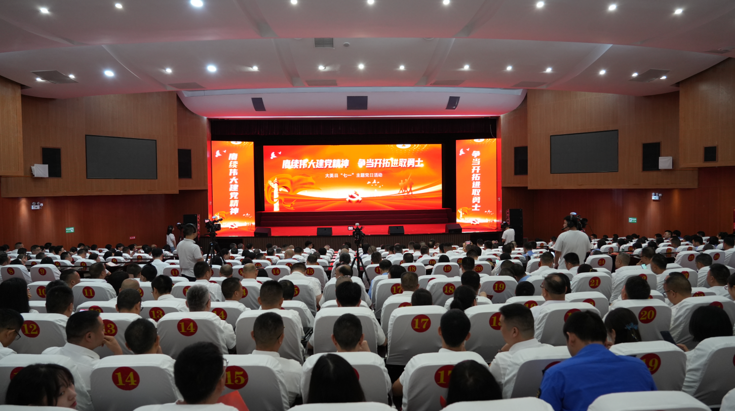 整场活动以“历史对话+光影叙事”双线串场,以奠基、开拓、赓续三大篇章为主线,通过青年党员与谭位中先烈独白与主题宣传片交相辉映构建立体叙事,展现了800勇士白手起家、艰苦创业的壮阔画卷、深情讲述创业历程中的感人故事与精神内核;在“勇士精神”感召下,中年一代党员在各行各业拼搏奉献、建设家乡、造福人民的生动场景与显著成果;全国道德模范冉体兰一臂换一命的勇士精神诠释了大英城市精神谱系中“奉献”二字的鲜活注脚。《致大英县全体党员的一封信》诵读声中交织着组织重托与时代叩问;在鲜红党旗的映照下,新党员代表紧握右拳,字字铿锵地宣读入党誓词,誓言如金石般掷地有声,宣告着对党的忠诚与为共产主义事业奋斗终身的坚定决心,展现出新时代青年党员昂扬向上的精神风貌与矢志不渝的责任担当。全场齐唱《没有共产党就没有新中国》歌声嘹亮,进一步增强了大英干群凝心聚力、锐意进取,高举“实业兴市、大英有为”和“引客入遂、大英有请”两面大旗,在大英高质量跨越式发展的火热实践中拼搏奋斗的感染力、号召力和影响力。