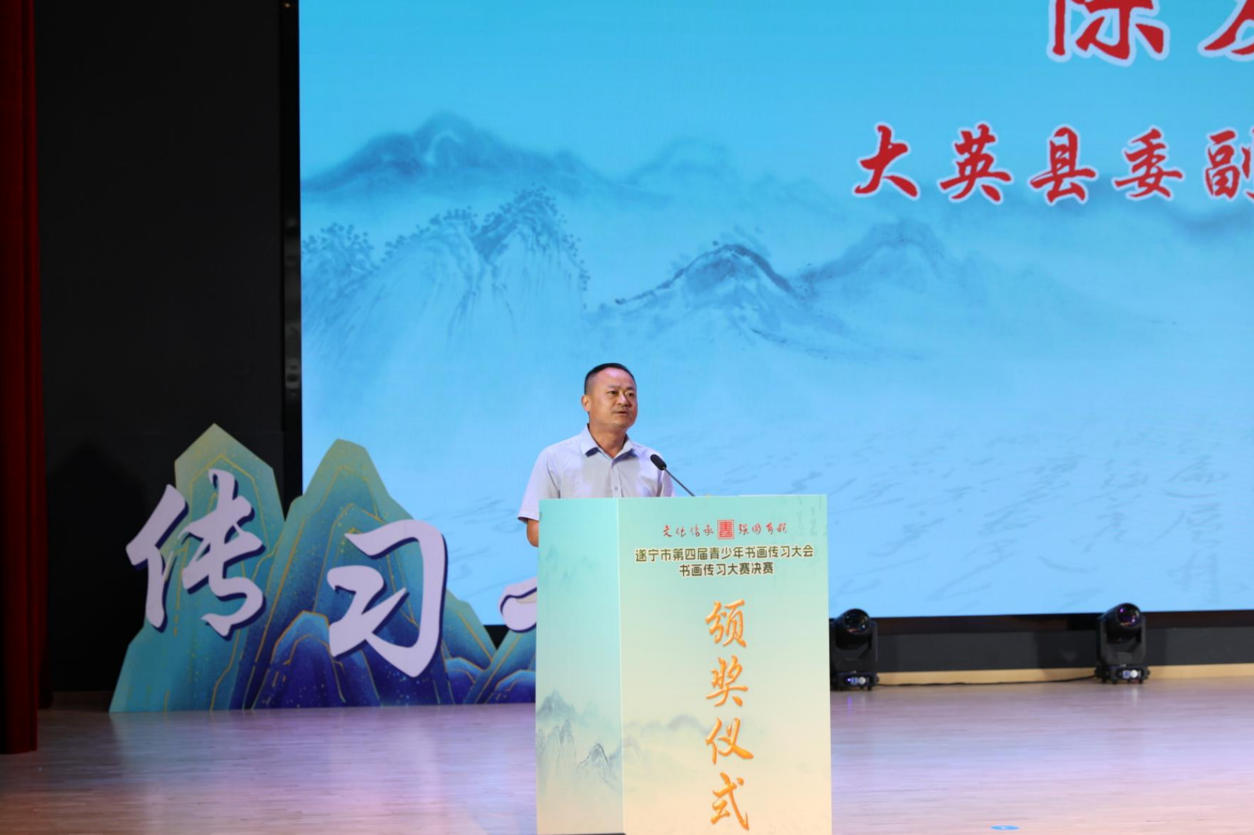 大英融媒体(记者 杨博文 王茜 刘环宇 吕东旭 肖冰雪 熊炯)6月14日,遂宁市第四届青少年书画传习大会书画传习大赛决赛在大英县举行。来自全市的320余名参赛选手齐聚一堂,以笔墨为载体展示艺术素养,传承中华优秀传统文化。市委常委、宣传部部长、市总工会主席涂虹,县委副书记、县长陈发友出席颁奖仪式。