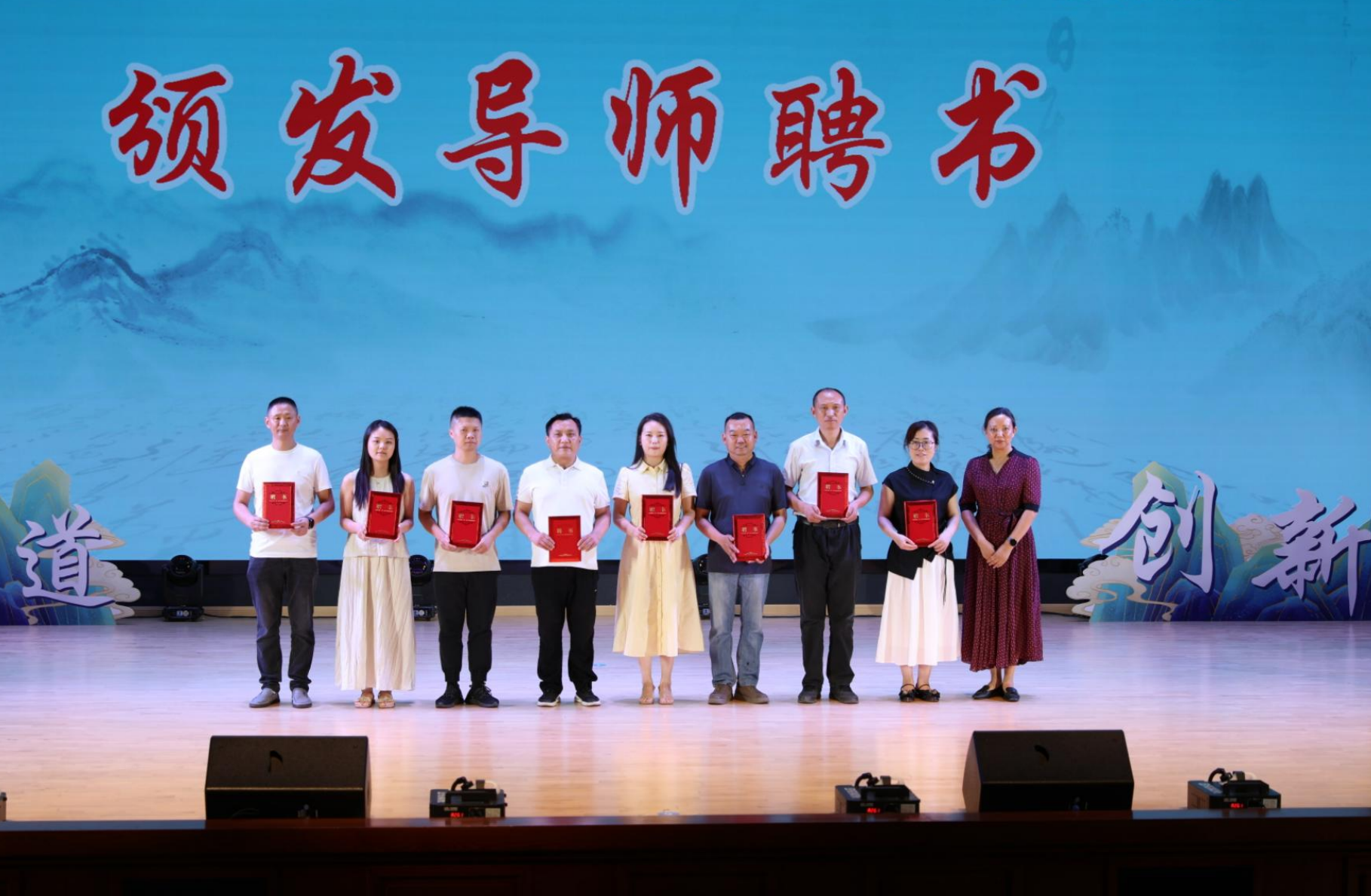 随后,出席活动的领导为遂宁市第四届青少年书画传习大会决赛书法组、国画组获奖代表以及书画传习教学课例获奖代表颁奖,并颁发了传习导师聘书。