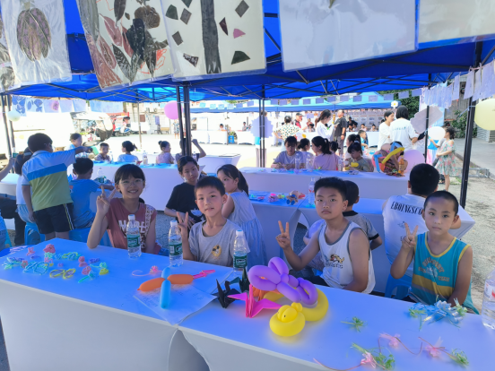公益集市当日,尽管天气炎热,但孩子们参与活动的热情丝毫未减。集市上内容丰富多样,精彩纷呈。孩子们将自己精心制作的手工艺品、绘画作品等进行义卖与展览,这些充满童趣与创意的作品,充分展现了他们的创造力与动手能力;文艺演出环节,孩子们载歌载舞,用灵动的舞姿和悦耳的歌声传递着快乐与自信,精彩的表演赢得了现场观众的阵阵掌声。互动游戏区则热闹非凡,孩子们在各种有趣的游戏中尽情欢笑,不仅收获了满满的快乐,还在潜移默化中增强了团队协作能力和社交能力。