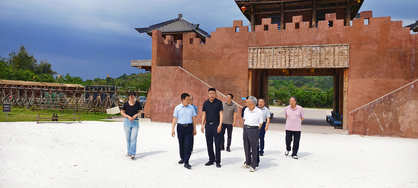 遂宁市中国死海旅游度假区党工委副书记、管委会常务副主任杨前陪同退休老领导到大英影视城调研。