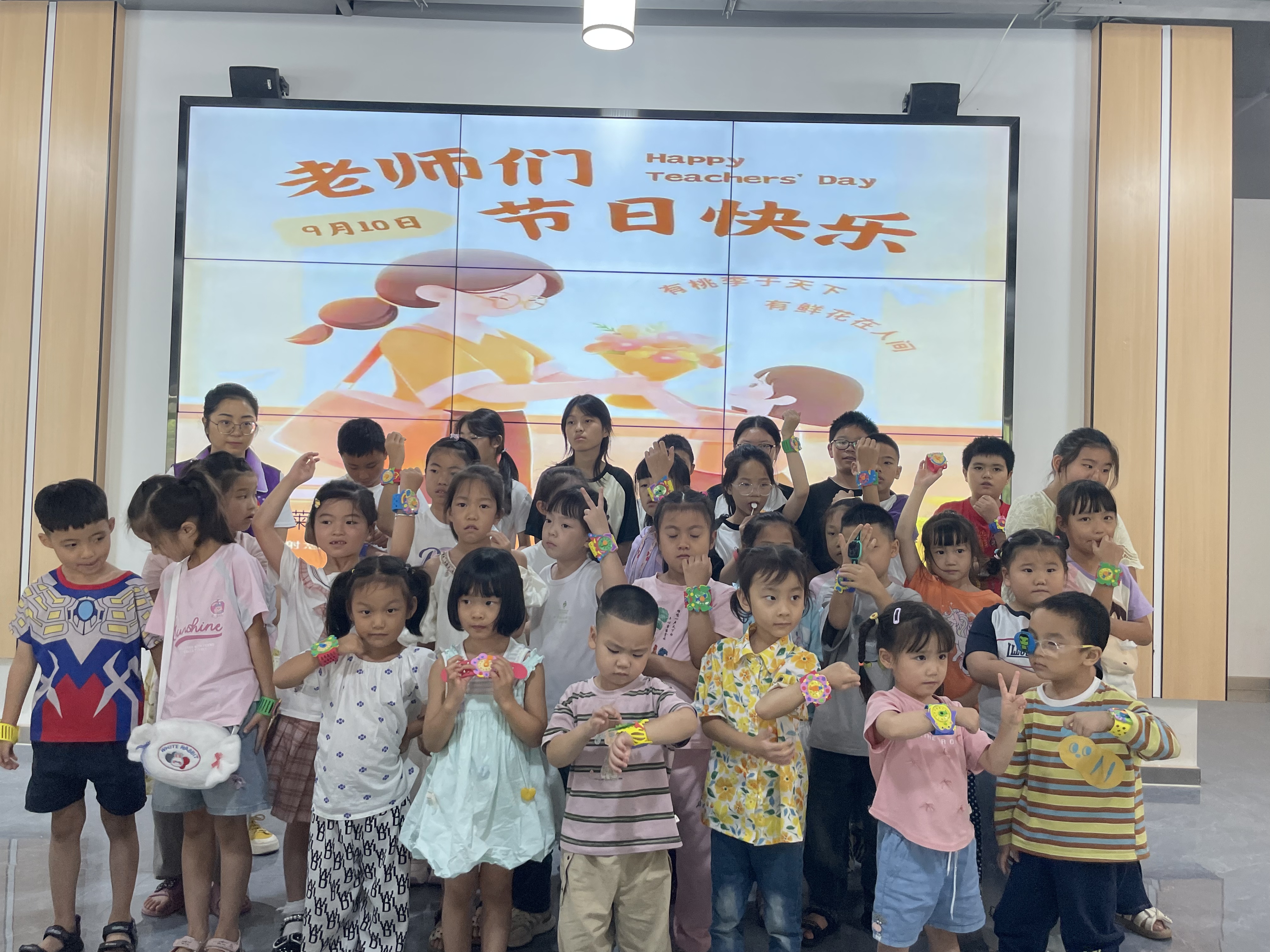 活动最后,工作人员为孩子们发放了零食,大家围坐在一起分享美食,欢声笑语不断。随后,全体参与人员共同拍摄集体合照,镜头定格下孩子们灿烂的笑容、家长们欣慰的神情,以及童伴妈妈忙碌的身影。至此,本次 “师恩如歌,桃李芬芳” 教师节主题活动圆满落幕。
