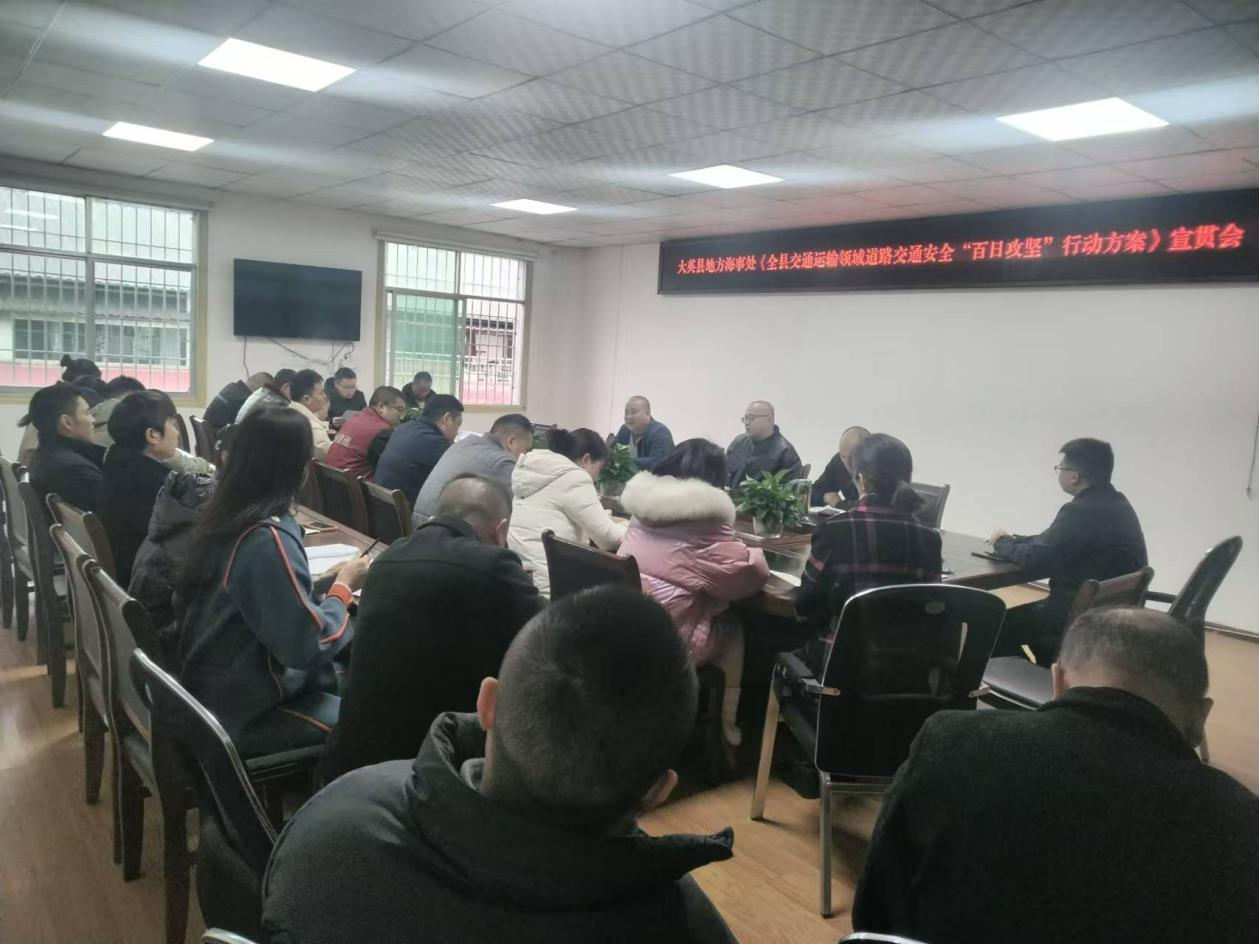 为认真贯彻落实省委、省政府主要领导批示精神,根据有关单位工作安排,2024年11月25日,县地方海事处组织县内公交、客运、货运、驾校、出租车、寄递物流等企业召开了《全省交通领域道路交通安全“百日攻坚”行动方案》宣贯会。