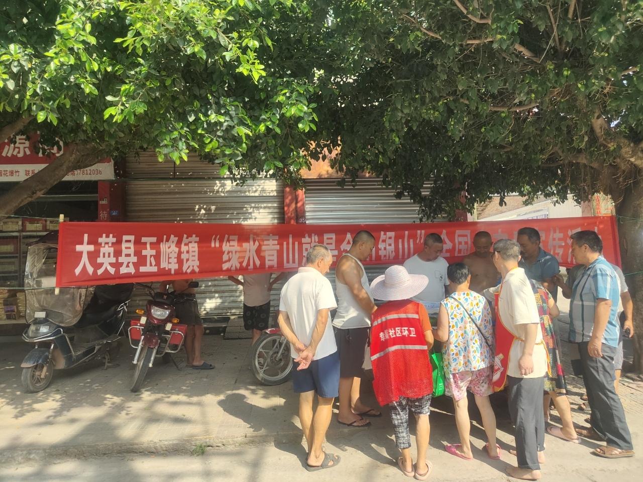 8月15日,为强化生态环保理念宣传、筑牢群众绿色发展意识,大英县玉峰镇执法办工作人员前往幸福社区,组织开展以“绿水青山就是金山银山”为主题的全国生态日宣传活动。