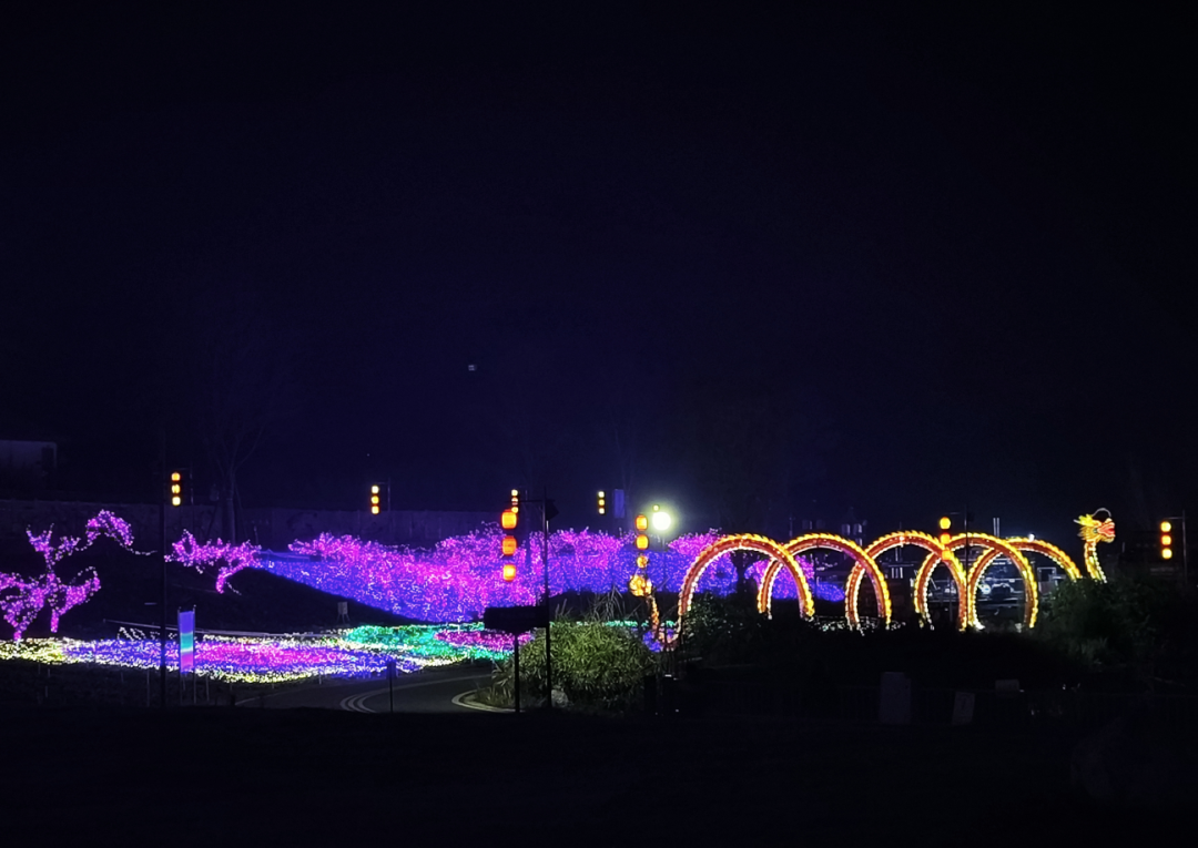 灯会融入现代科技元素,利用AR、VR技术,让古老的灯艺在桃树上焕发新生。灯光柔和而温暖,将四周映照得如梦似幻,让人不由自主地放慢脚步,沉浸在这份古典与现代完美融合的雅致之中。