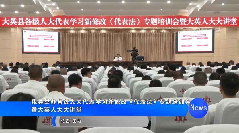 大英融媒体(记者 王力)6月25日,大英县举办各级人大代表学习新修改《代表法》专题培训会暨大英人大大讲堂,遂宁市人大常委会党组书记、主任雷刚,办公室主任唐建军出席会议。大英县人大常委会党组书记、主任文漳参加并主持会议。