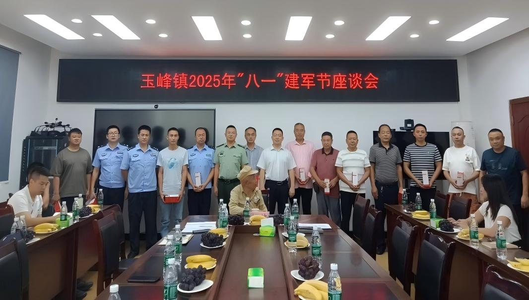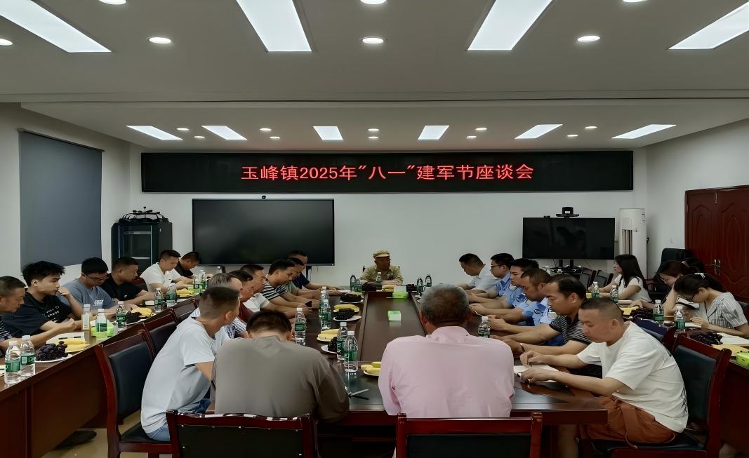 在喜迎中国人民解放军建军98周年之际,玉峰镇党委、政府于2025年7月30日上午在镇党委会议室组织召开“八一”建军节座谈会。镇党政领导班子成员、全体机关干部、村(社区)在职退役军人干部及特邀退役军人代表齐聚一堂,共庆光辉节日,共话发展大计。