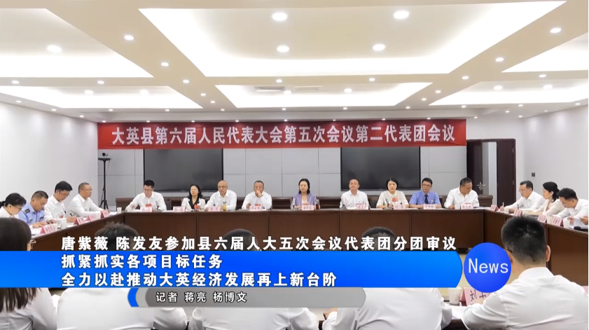 大英融媒体(记者 蒋亮 杨博文)5月22日至5月23日,县委书记唐紫薇,县委副书记、代理县长陈发友一同参加县六届人大五次会议的各代表团分团会议,与人大代表们齐聚一堂,围绕各项报告展开热烈审议。唐紫薇强调,要全面贯彻落实党的二十大和二十届二中、三中全会精神,认真落实党中央、国务院,省委、省政府,市委、市政府和县委决策部署,抓紧抓实各项目标任务,全力以赴推动大英经济发展再上新台阶。