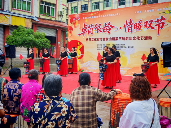 秋阳和煦,情暖人心。在国庆、中秋双节即将来临之际,为弘扬尊老敬老传统美德,丰富老年人精神文化生活,提升健康福祉,9月28日(周日),象山镇人民政府携手老年人体育协会(老体协)在金象广场隆重举办“卓筒银铃、情暖双节”大型主题敬老活动。活动集文艺汇演、手工展示、健康服务于一体,为全镇老年朋友献上了一场精彩纷呈、温情满满的节日盛宴。舞乐飞扬,银龄绽放时代芳华活动在欢快的锣鼓声中拉开序幕。由象山镇老体协精心组织编排的老年文艺节目轮番上演,充分展现了新时代老年人积极向上、乐享晚年的精神风貌。