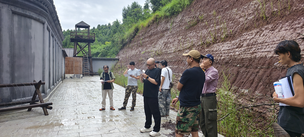 影视产业发展工作专班陪同网络剧《罪影猎人》剧组到大英影视城堪景。