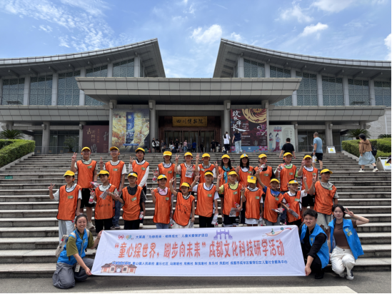 8月14日至15日,在大英县民政局指导下,象山镇人民政府联合成都爱芽妇女儿童社会服务中心在成都开展了一场融合古蜀文脉与科技魅力的研学之旅。来自象山镇的22名儿童,在爱芽社工、童伴妈妈与志愿者的悉心陪伴下,走进这座连续十三年荣膺“中国最具幸福感城市”的活力之都,以沉浸式体验解锁天府之国的千年密码,感受传统与现代的动人交响。