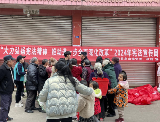 今年是中华人民共和国成立75周年,12月4日是第十一个“国家宪法日”。为深入宣传依宪治国、依宪执政,弘扬宪法精神,树立宪法权威,12月4日,象山镇社会事务和社会治理办联合象山司法所、镇纪委、镇农业综合服务中心、富乐社区以“大力弘扬宪法精神,推动进一步全面深化改革”为主题,在象山镇星级农贸市场开展“2024年‘宪法宣传周’暨宪法进社区”活动。