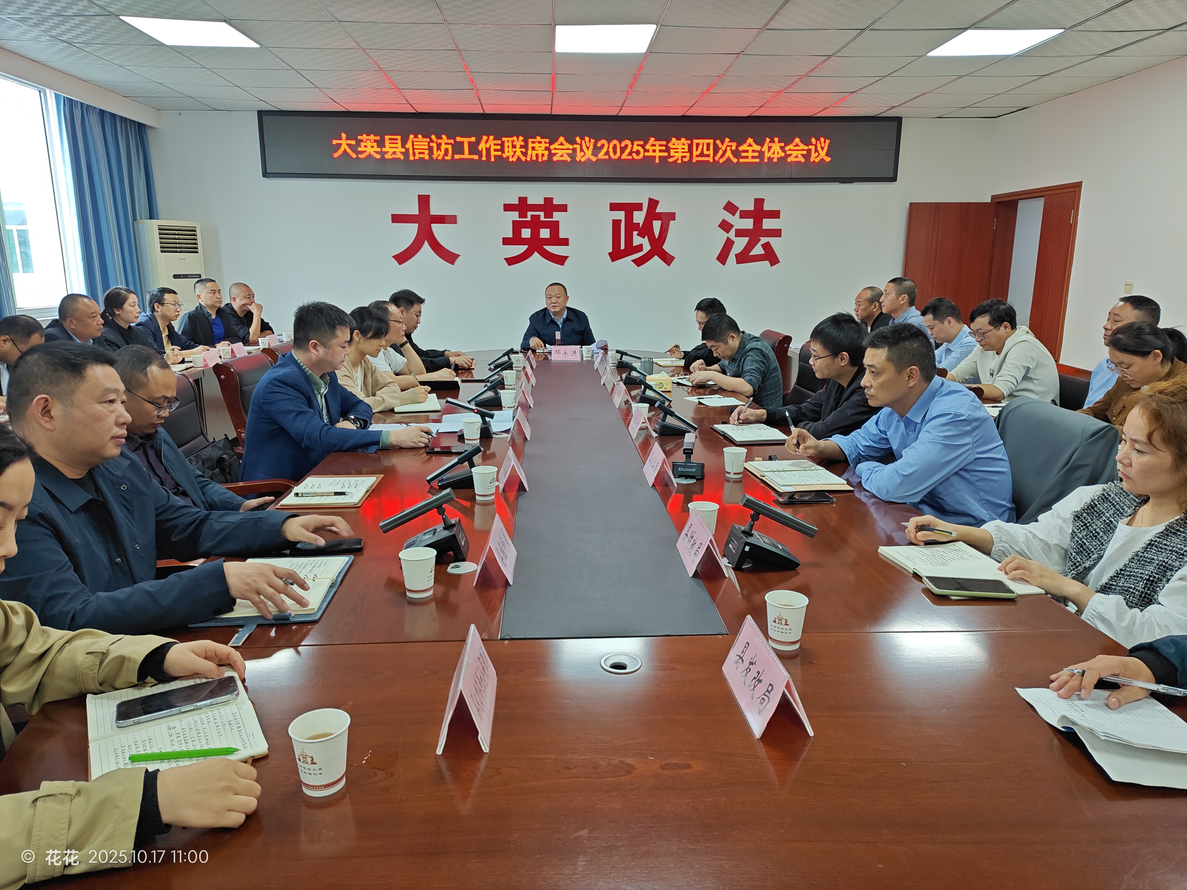 10月17日上午,大英县召开2025年信访工作联席会议第四次全体会议,深入贯彻落实中央和省、市、县关于信访维稳工作的决策部署,专题研究部署党的二十届四中全会期间信访服务保障工作。县人大党组成员、副主任邓永进出席会议并讲话,会议由县委社会工作部副部长、县信访局局长郑学超主持。