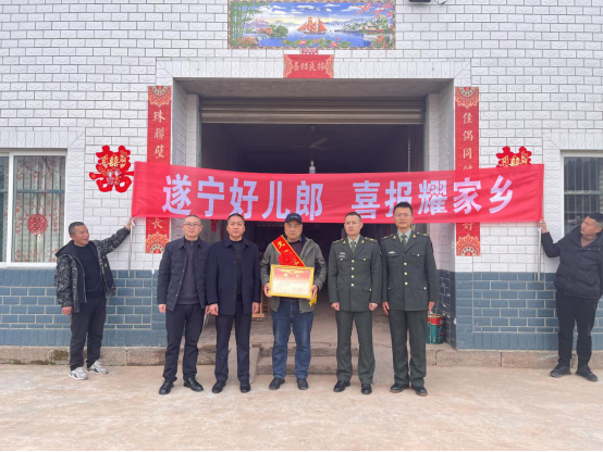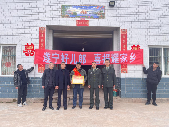 2025年2月10日,县退役军人事务局刘主任与镇武装部蒲部长一行,带着三等功喜报与荣誉,前往三溪村谭靖家中。谭靖目前服役于驻港部队,在驻港期间,他始终坚守岗位,以高度的责任感和使命感,出色完成各项任务,展现了过硬的军事素质和优良的军人作风,为维护香港地区的繁荣稳定贡献了自己的力量 ,其优异表现得到了部队的高度认可,荣立三等功。
