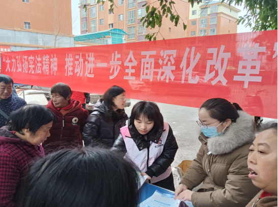 活动现场,工作人员设立宣传台,悬挂宣传横幅,向赶集的群众发放宪法宣传册、普法挂历、禁毒知识宣传手册、防范电信网络诈骗宣传手册等资料,用通俗易懂的语言,向广大群众宣讲什么是宪法、公民的基本权利和基本义务是什么?同时,为群众带来反电诈、反邪教等法规知识,引导群众养成自觉学法、办事依法、遇事找法、解决问题用法、化解矛盾靠法的法治方式。