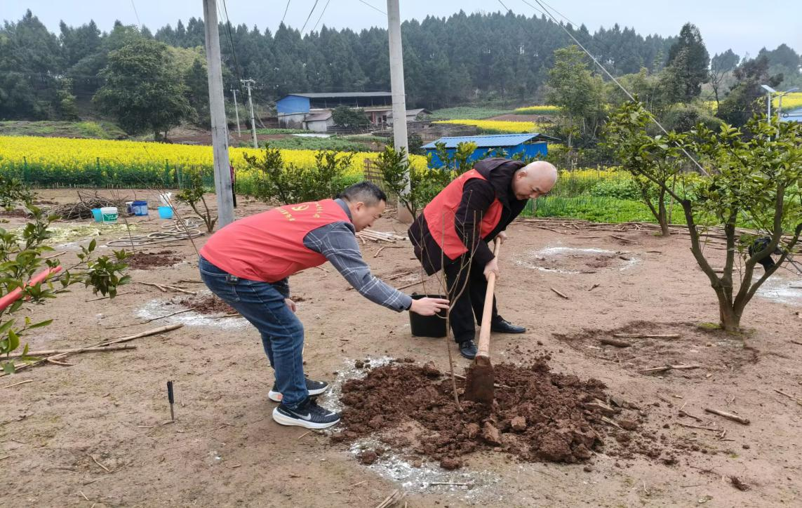 在植树现场,大家团结协作,两人一组分工明确,挖坑铲土、扶树正苗……呈现出一片热火朝天的劳动景象。经过两个多小时的努力,新植的树苗昂然挺立在田间,在和煦的微风中萌发盎然生机,又增添了一抹绿意与活力。